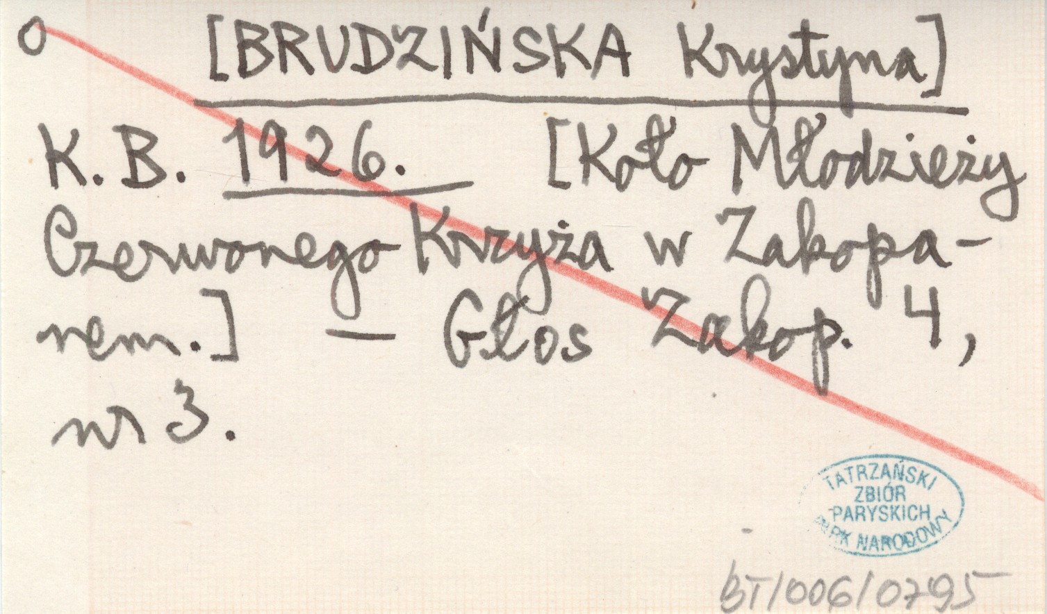 K. B. [BRUDZIŃSKA Krystyna] 1926 [Koło Młodzieży Czerwonego Krzyża w Zakopanem.]