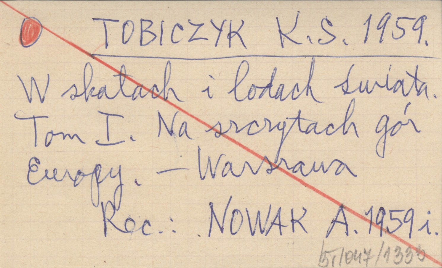 TOBICZYK K. S. 1959 W skałach i lodach świata. Tom I. Na szczytach gór Europy.