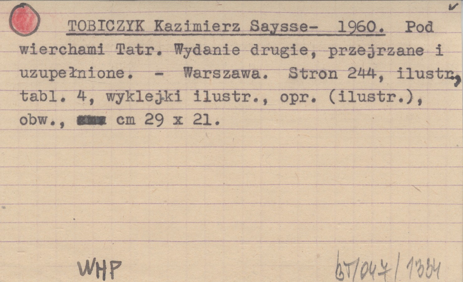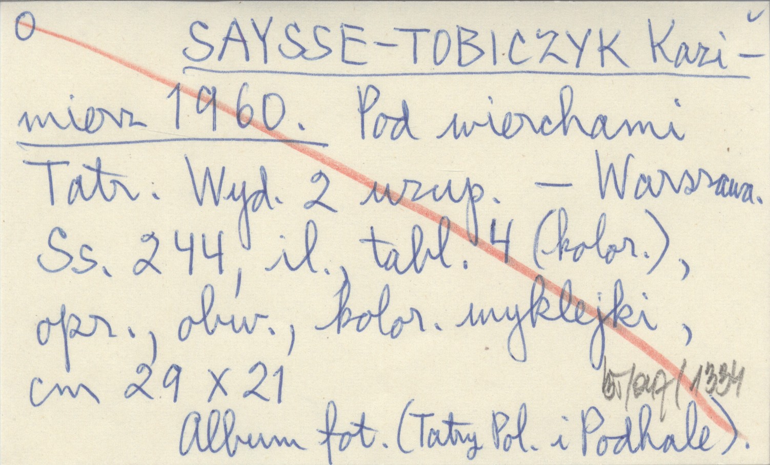 TOBICZYK Kazimierz Saysse- 1960 Pod wierchami Tatr.