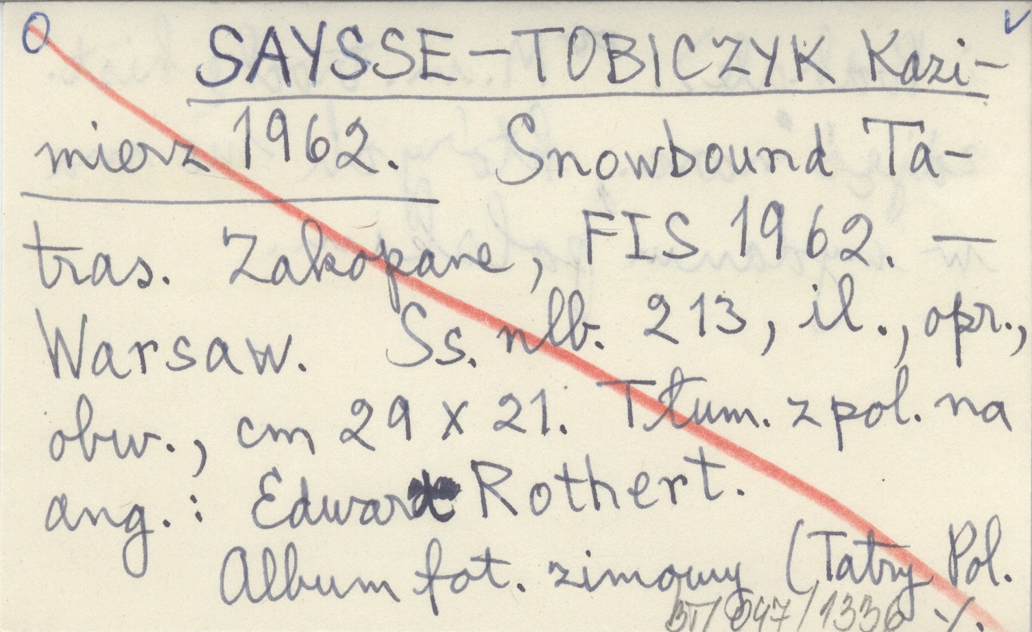 SAYSSE-TOBICZYK Kazimierz 1962 Snowbound Tatras. Zakopane, FIS 1962.