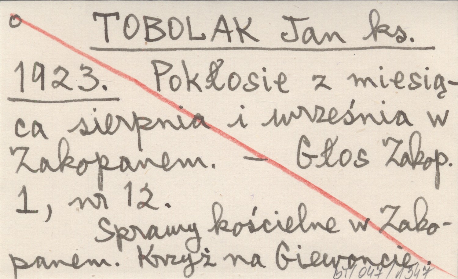TOBOLAK Jan ks. 1923 Pokłosie z miesiąca sierpnia i września w Zakopanem.