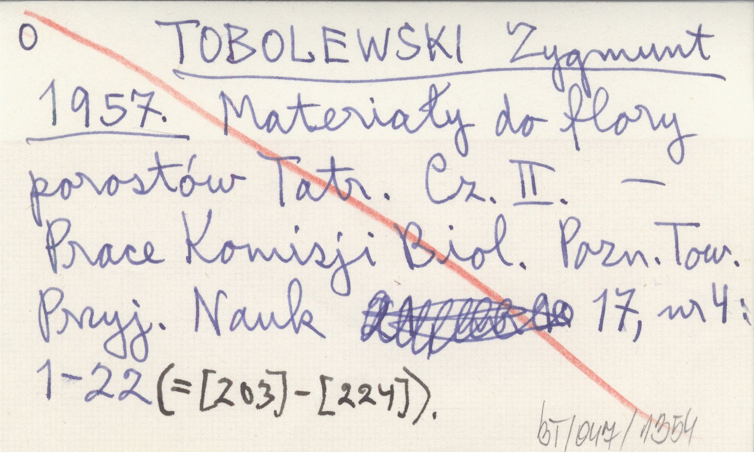TOBOLEWSKI Zygmunt 1957 Materiały do flory porostów Tatr. Cz. II.