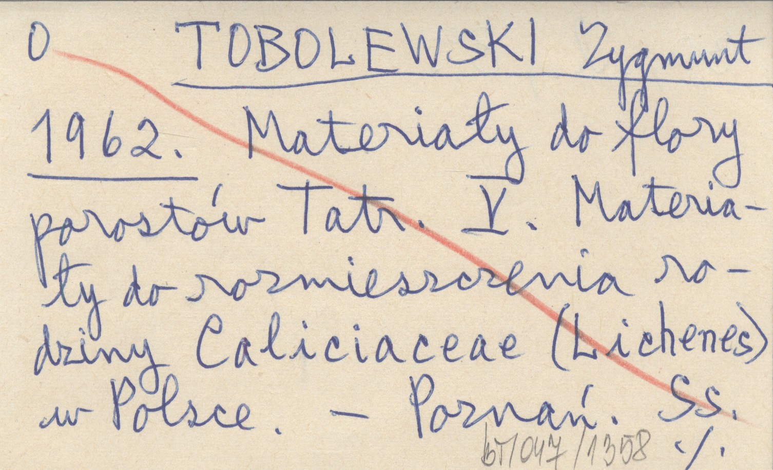 TOBOLEWSKI Zygmunt 1962 Materiały do flory porostów Tatr. V. Materiały do rozmieszczenia rodziny Caliciaceae (Lichenes) w Polsce.
