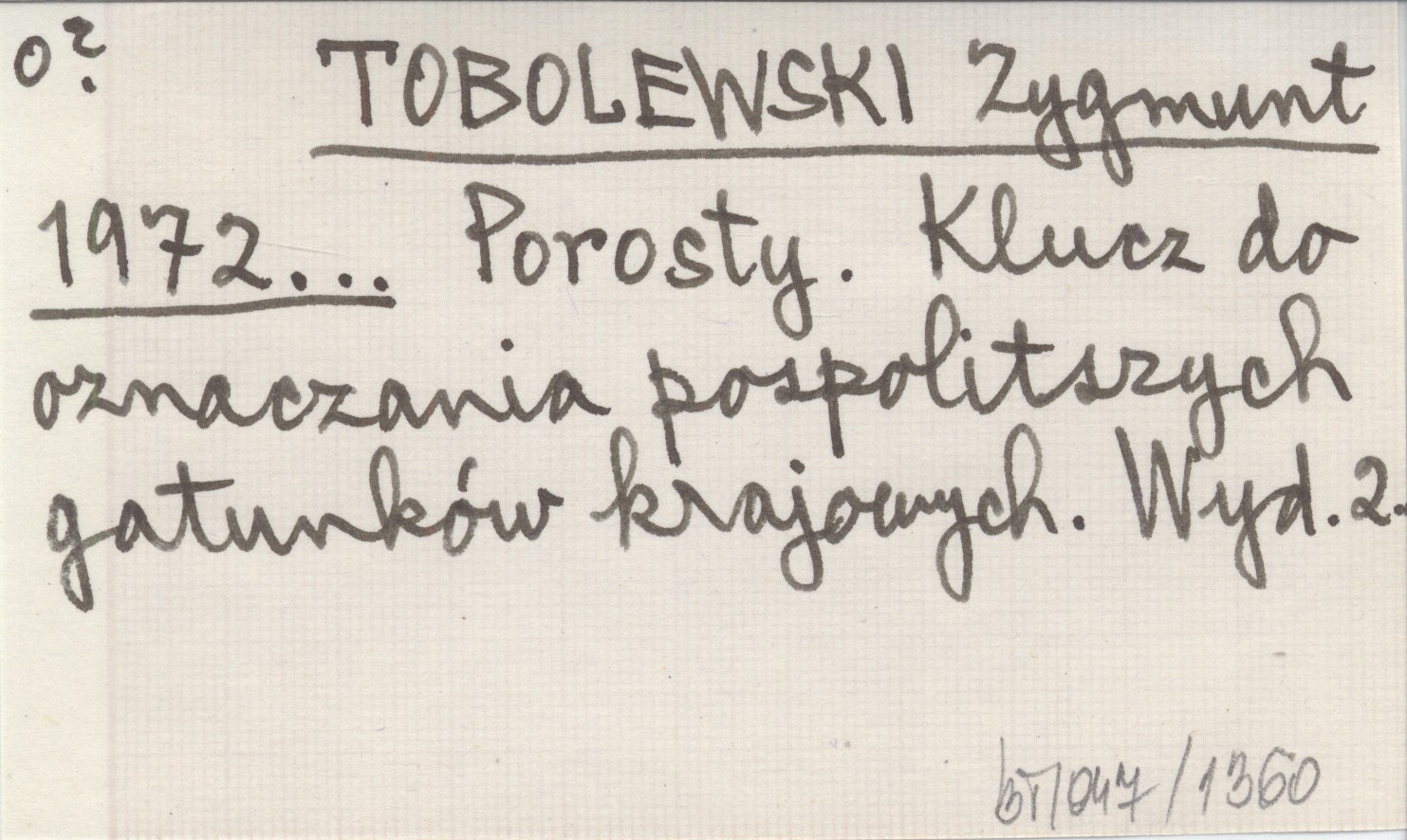 TOBOLEWSKI Zygmunt 1972... Porosty. Klucz do oznaczania pospolitszych gatunków krajowych.