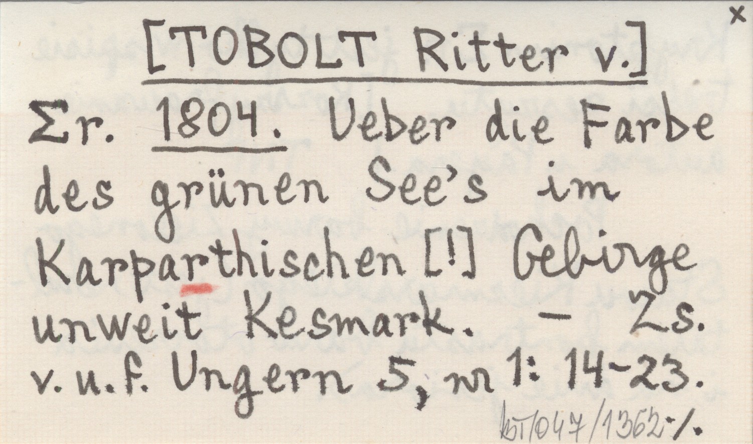 [TOBOLT Ritter v.] 1804 Ueber die Farbe des grünen See's im Karparthischen [!] Gebirge unweit Kesmark.