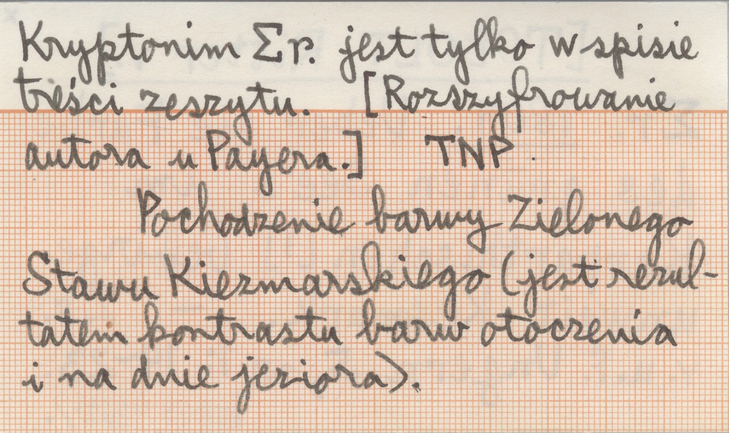Zeitschrift von und für Ungarn, 5, nr 1: 14-23. Pochodzenie barwy Zielonego Stawu Kiezmarskiego (jest rezultatem kontrastu barw otoczenia i na dnie jeziora). Kryptonim jest tylko w spisie treści zeszytu. [Rozszyfrowanie autora u Payera.]