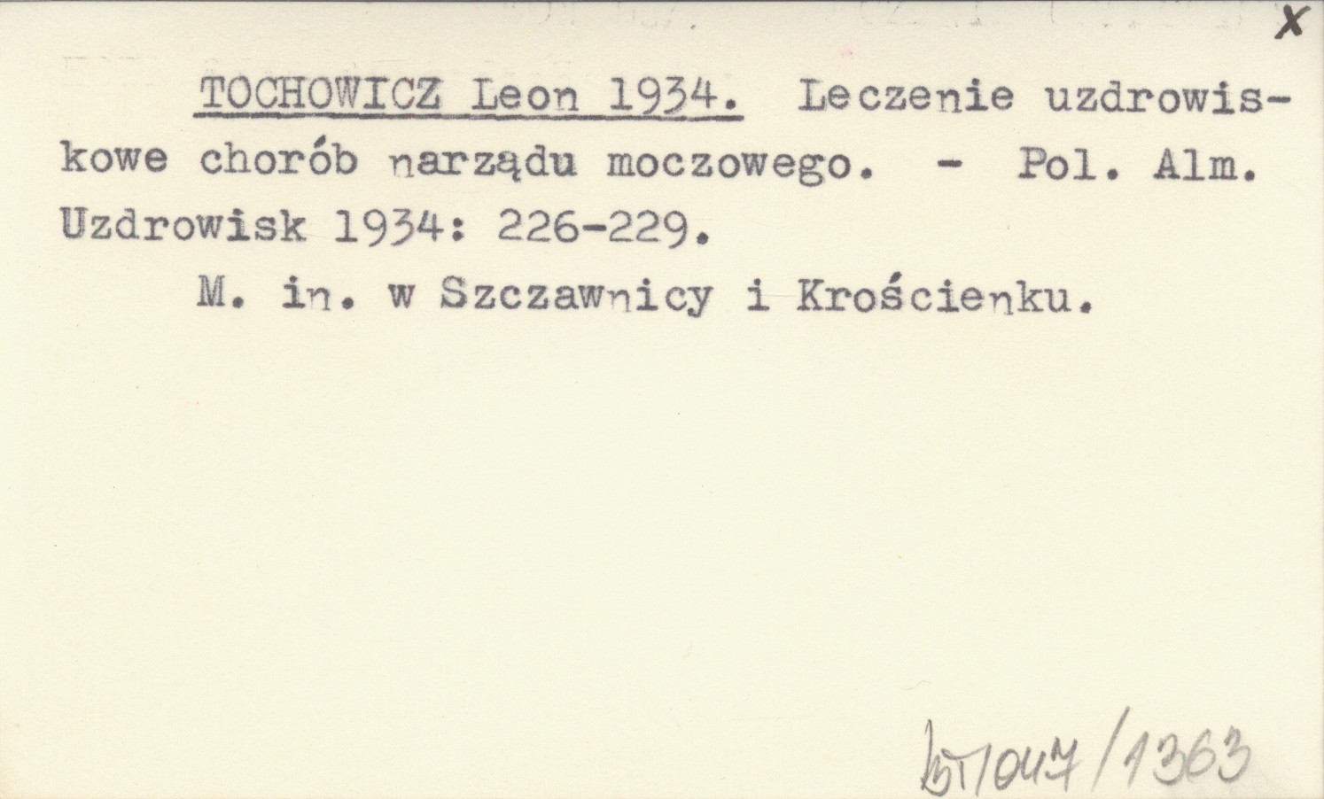 TOCHOWICZ Leon 1934 Leczenie uzdrowiskowe chorób narządu moczowego.