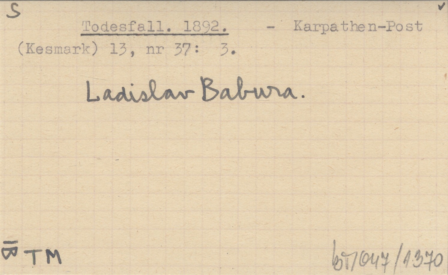 Karpathen-Post (Kesmark) , 13, nr 37: 3. Ladislav Babura.