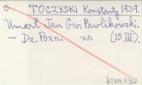 TOCZYSKI Konstanty 1939 Umarł Jan Gw. Pawlikowski.
