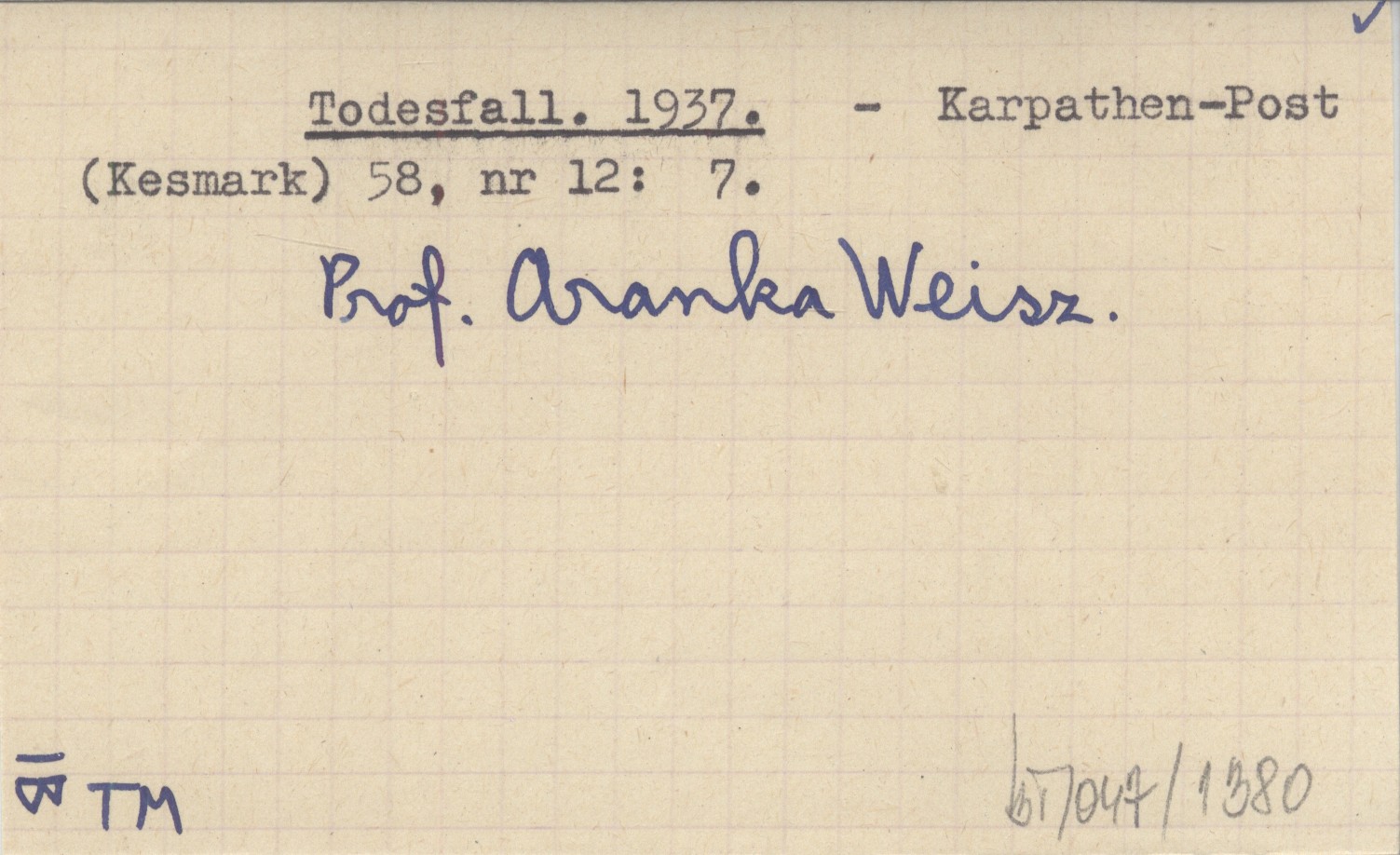 Karpathen-Post (Kesmark) , 58, nr 12: 7. Prof. Aranka Weisz.