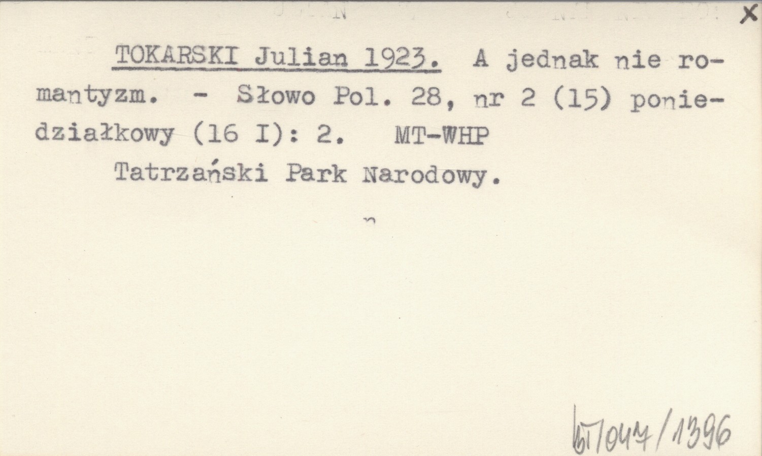 Słowo Polskie, 28, nr 2 (15) poniedziałkowy (16 I): 2. Tatrzański Park Narodowy.