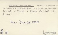 TOKARSKI J. 1926 Granit z Granatów w Tatrach.