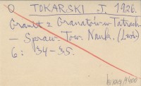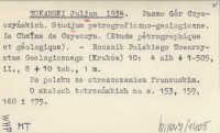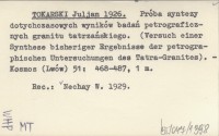 TOKARSKI J. 1926 Próba nowej syntezy badań petrograficznych granitu tatrzańskiego.