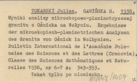 TOKARSKI Julian GAWIŃSKA, H. ; 1938 Wyniki analizy mikroskopowo-planimetrycznej granitu z Ośnicka na Wołyniu. Ergebnisse der mikroskopisch-planimetrischen Analysen des Granits von Ośnick in Wolhynien.