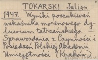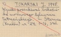 TOKARSKI J. 1948 Wyniki poszukiwań wskaźnika morenowego dyluwium tatrzańskiego.