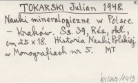 TOKARSKI Julian 1948 Nauki mineralogiczne w Polsce.