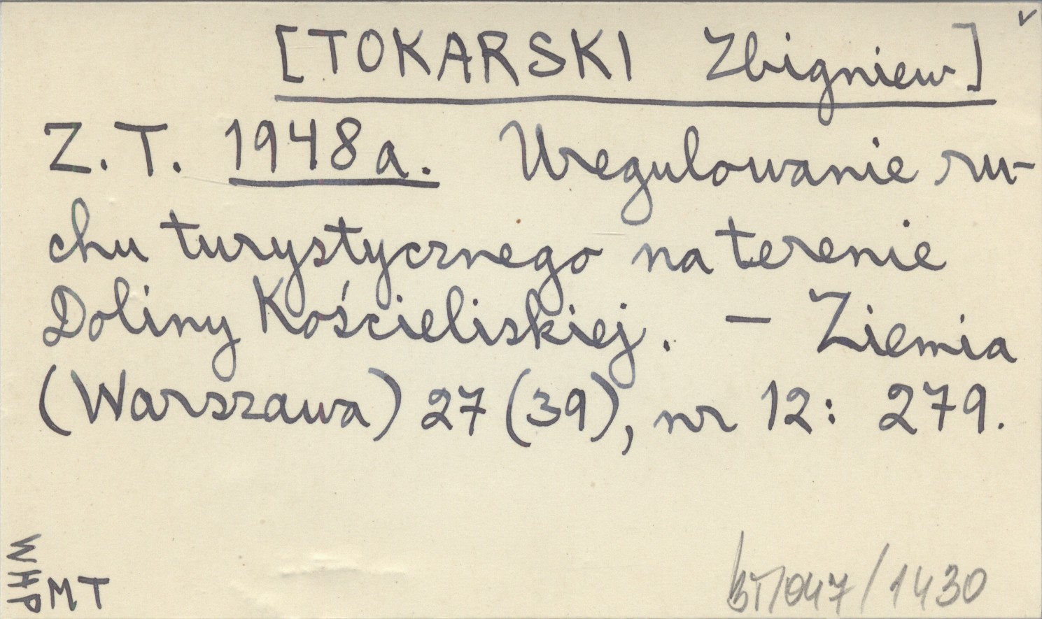 Z. T. [TOKARSKI Zbigniew] 1948 a Uregulowanie ruchu turystycznego na terenie Doliny Kościeliskiej.