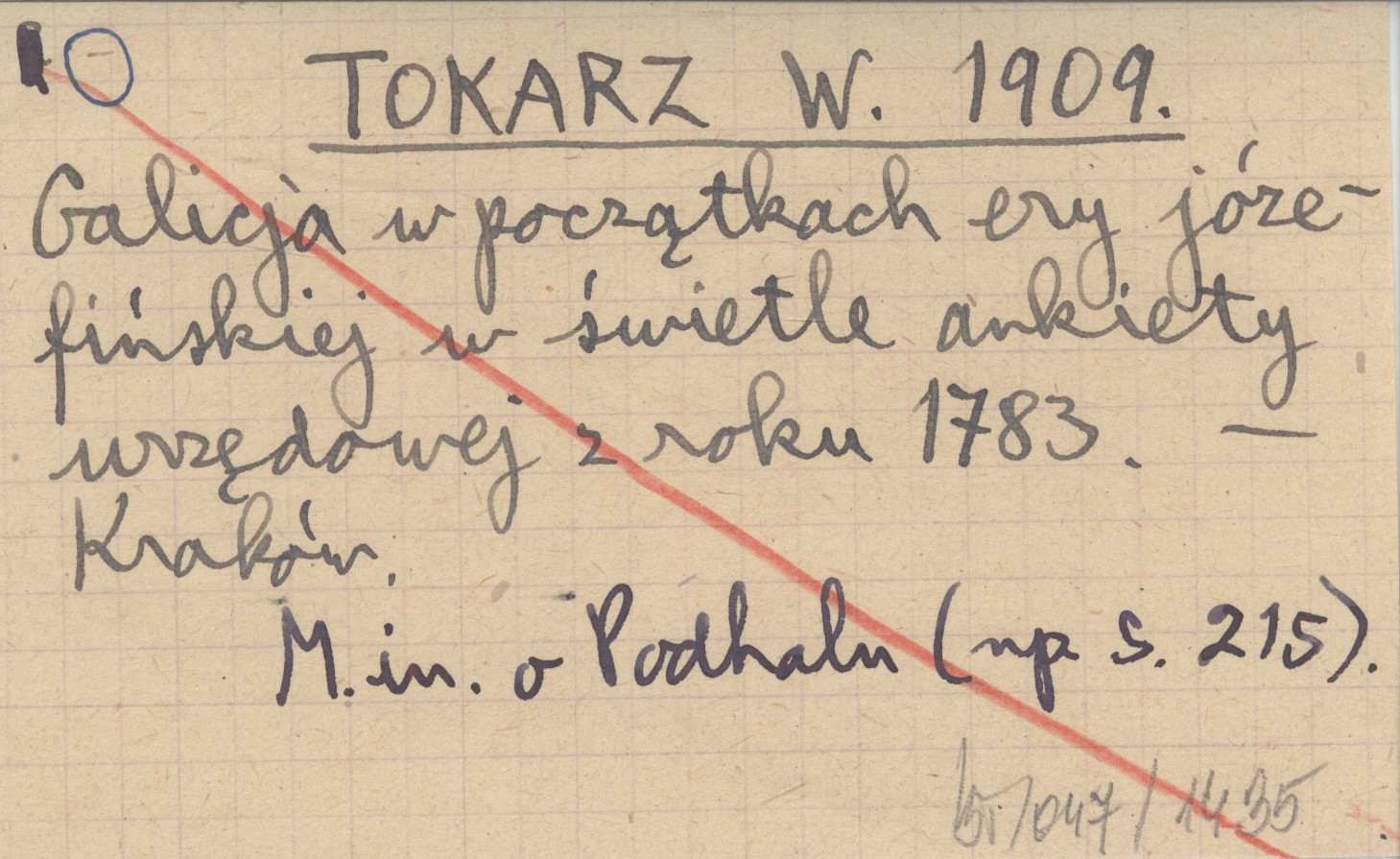 TOKARZ W. 1909 Galicja w początkach ery józefińskiej w świetle ankiety urzędowej z roku 1783.