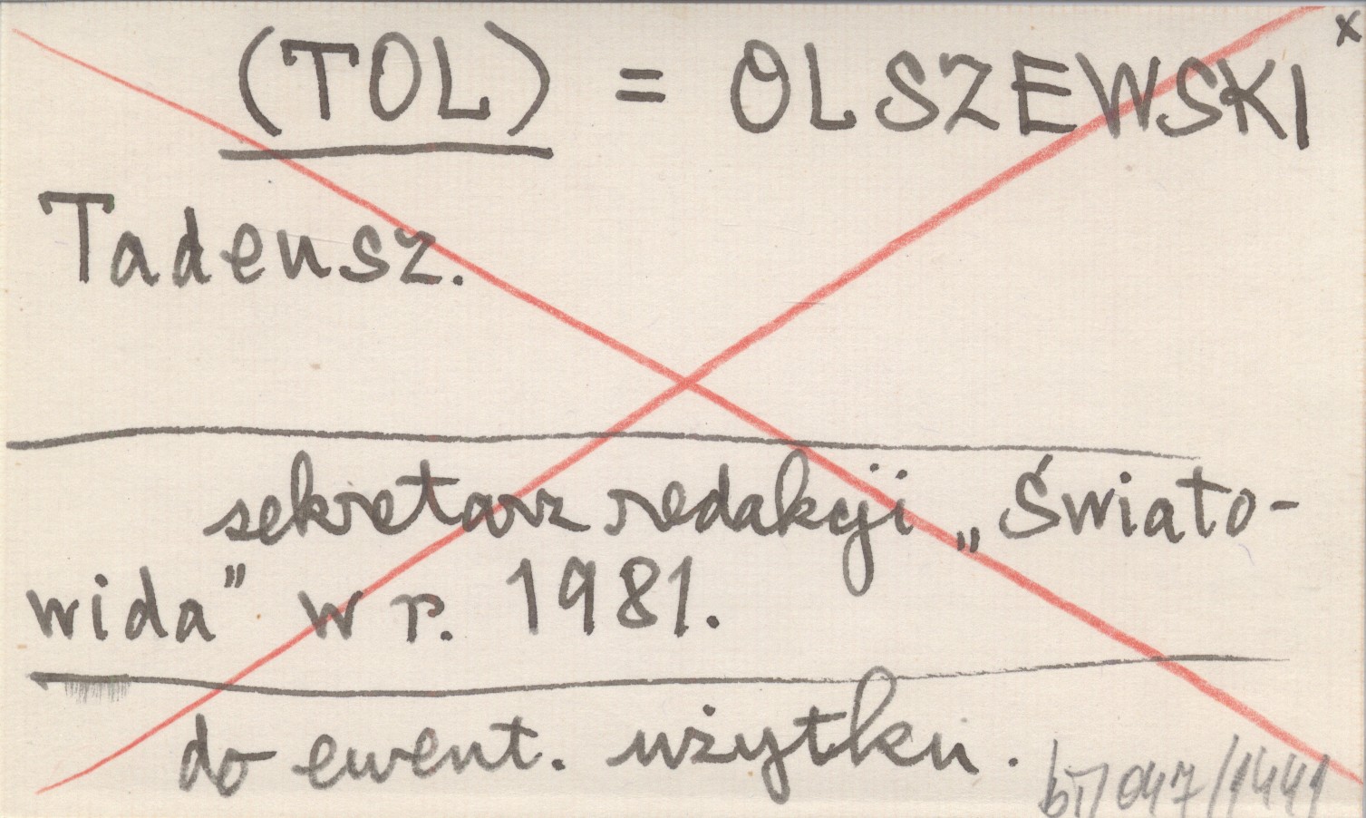 (TOL) OLSZEWSKI Tadeusz sekretarz redakcji "Światowida" w r. 1981. do ewent. użytku.