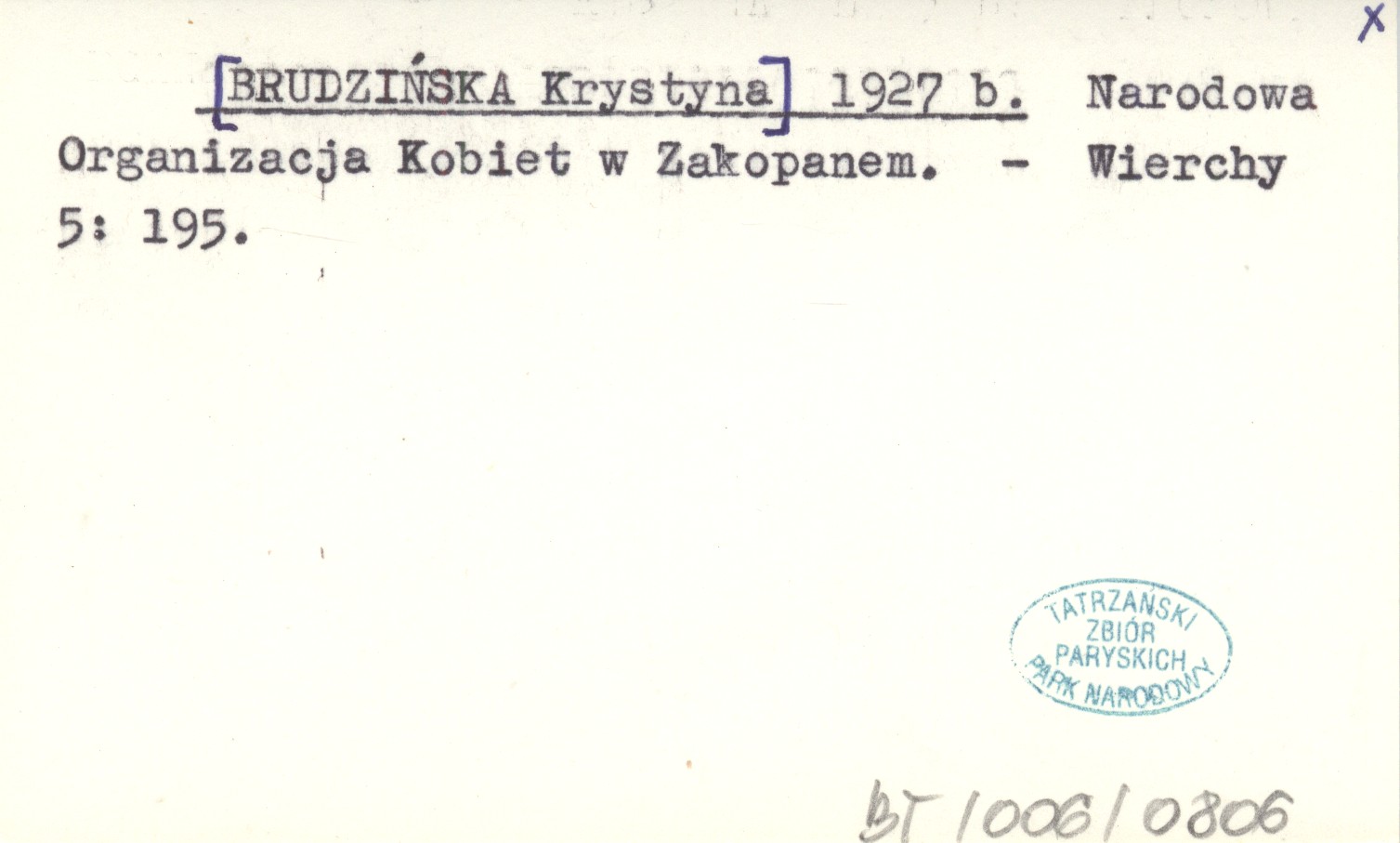 [BRUDZIŃSKA Krystyna] 1927 b Narodowa Organizacja Kobiet w Zakopanem.