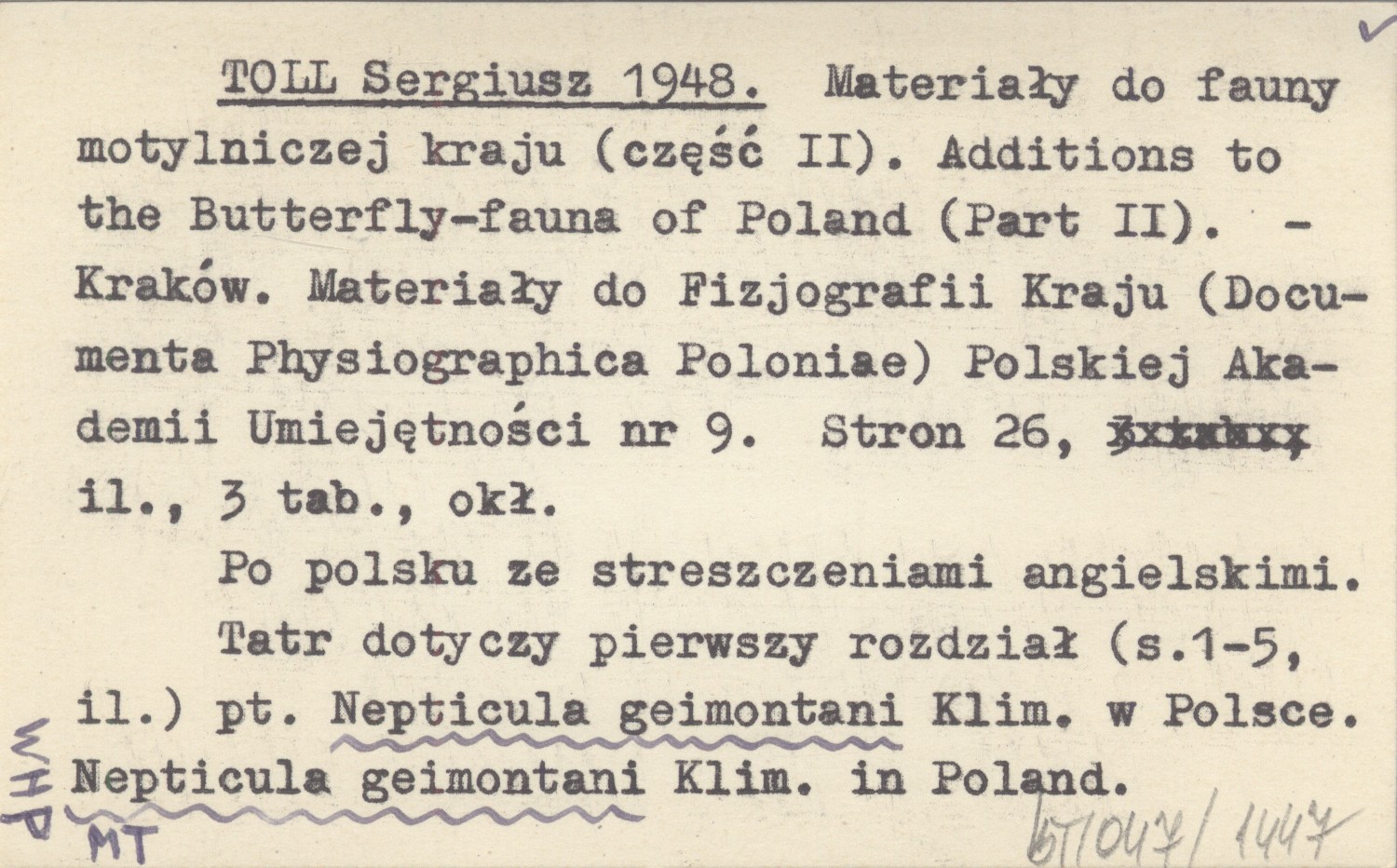 TOLL Sergiusz 1948 Materiały do fauny motylniczej kraju (część II). Additions to the Butterfly-fauna of Poland (Part II).