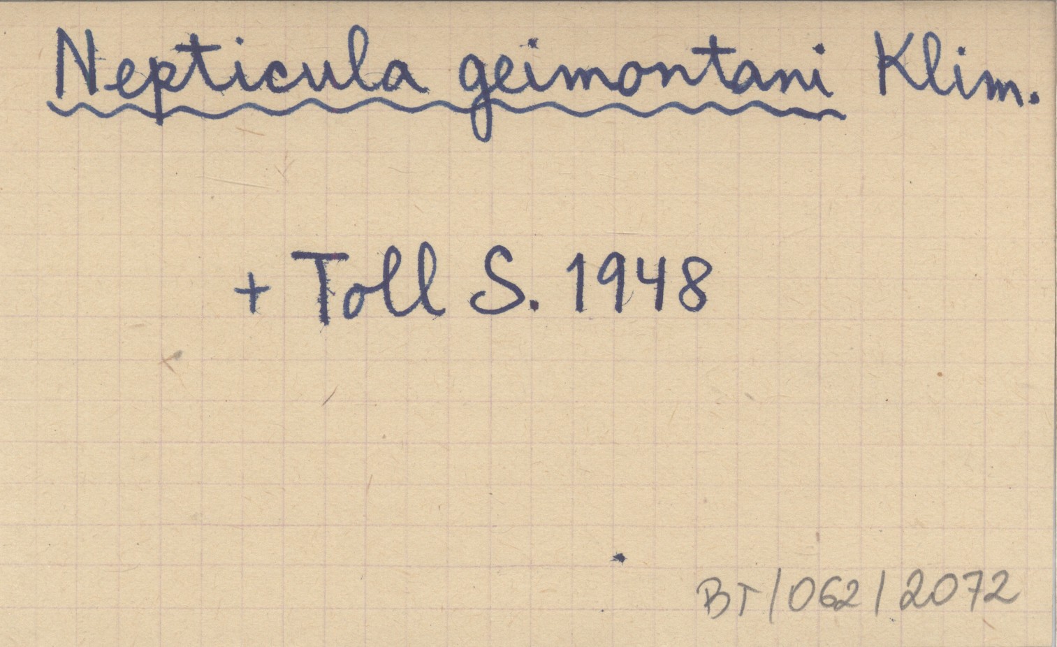 Materiały do Fizjografii Kraju (Documenta Physiographica Poloniae) Polskiej Akademii Umiejętności (Kraków) , Nr 9, 26 s., il., 3 k. tabl, okł. Tatr dotyczy pierwszy rozdział (s. 1-5, il.) pt. Nepticula geimontani Klim. w Polsce. Nepticula geimontani Klim. in Poland. Po polsku ze streszczeniami angielskimi.