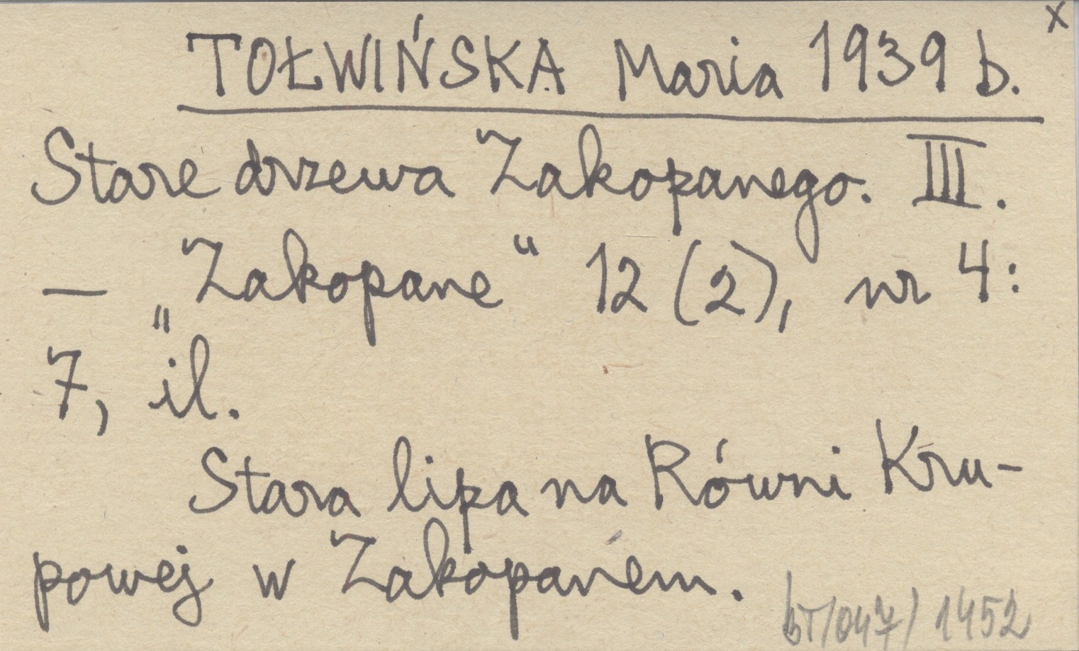 TOŁWIŃSKA Maria 1939 b Stare drzewa Zakopanego. III.