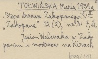 TOŁWIŃSKA Maria 1939 a Stare drzewa Zakopanego. I, II.