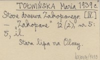 MT [TOŁWIŃSKA Maria] 1939 Stare drzewa Zakopanego. I.
