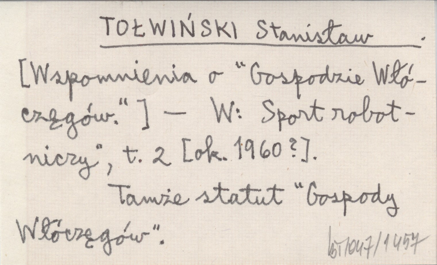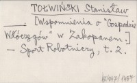 TOŁWIŃSKI Stanisław [ok. 1960 ?] [Wspomnienia o "Gospodzie Włóczęgów" w Zakopanem].