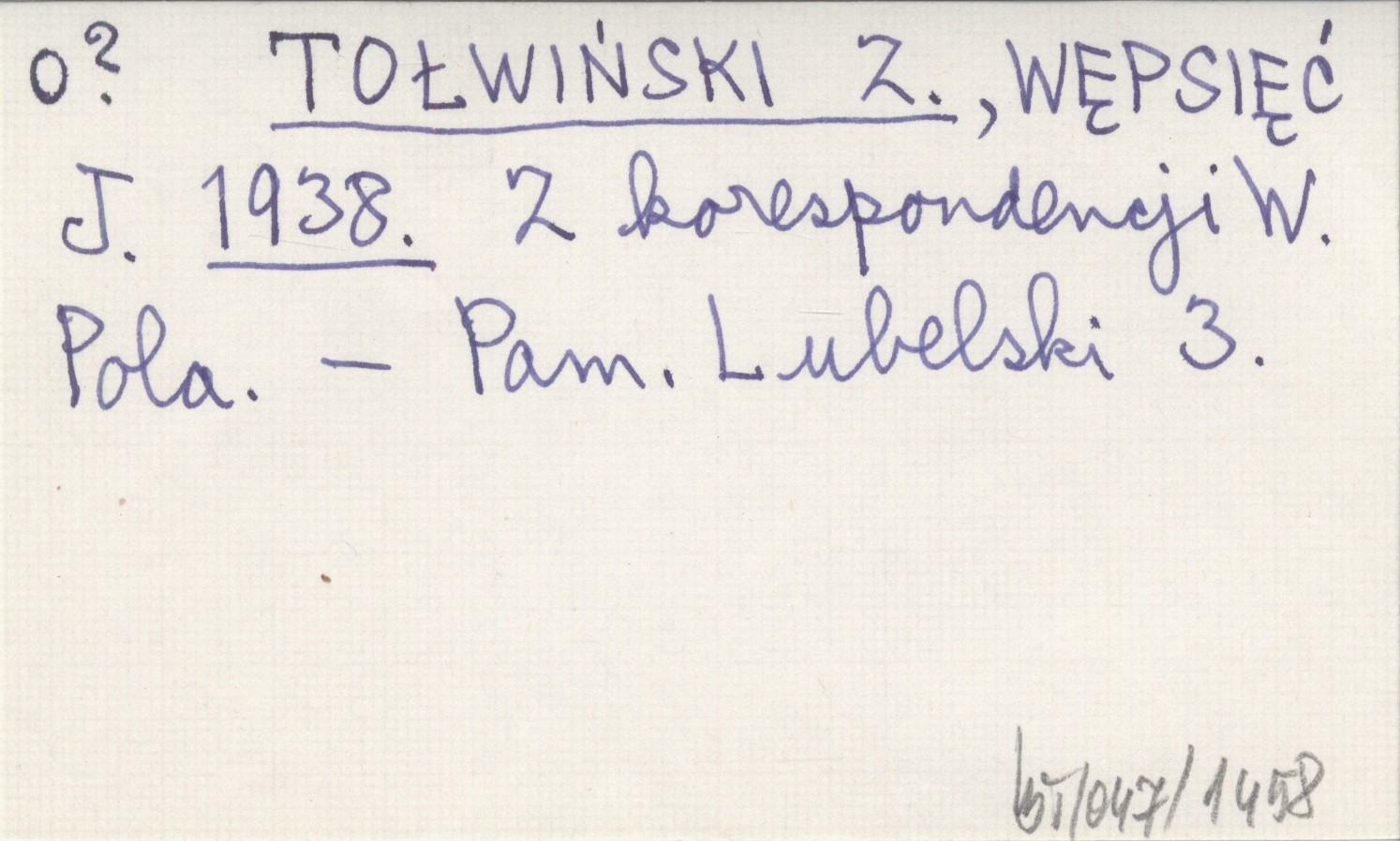 TOŁWIŃSKI Z. WĘPSIĘĆ, J. ; 1938 Z korespondencji W. Pola.