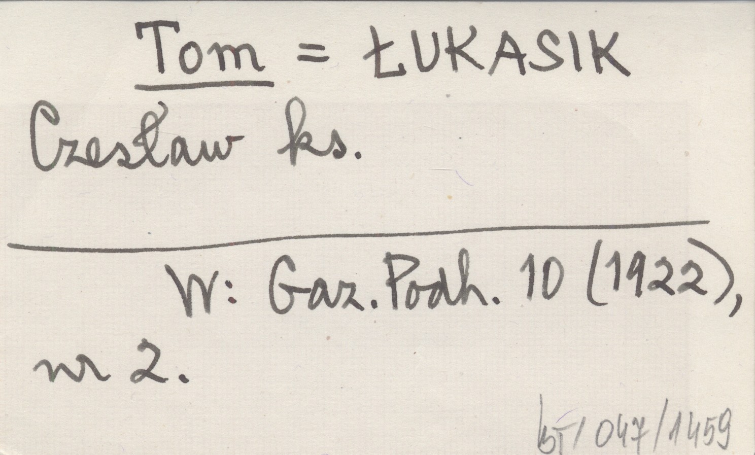Tom ŁUKASIK Czesław ks. Gazeta Podhalańska 10 (1922), nr 2.