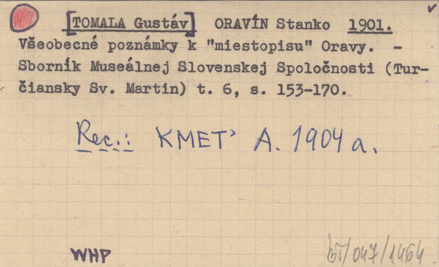 Sborník Museálnej Slovenskej Spoločnosti (Turčiansky Sv. Martin) , T. 6: 153-170. REC: KMEŤ A. 1904 a