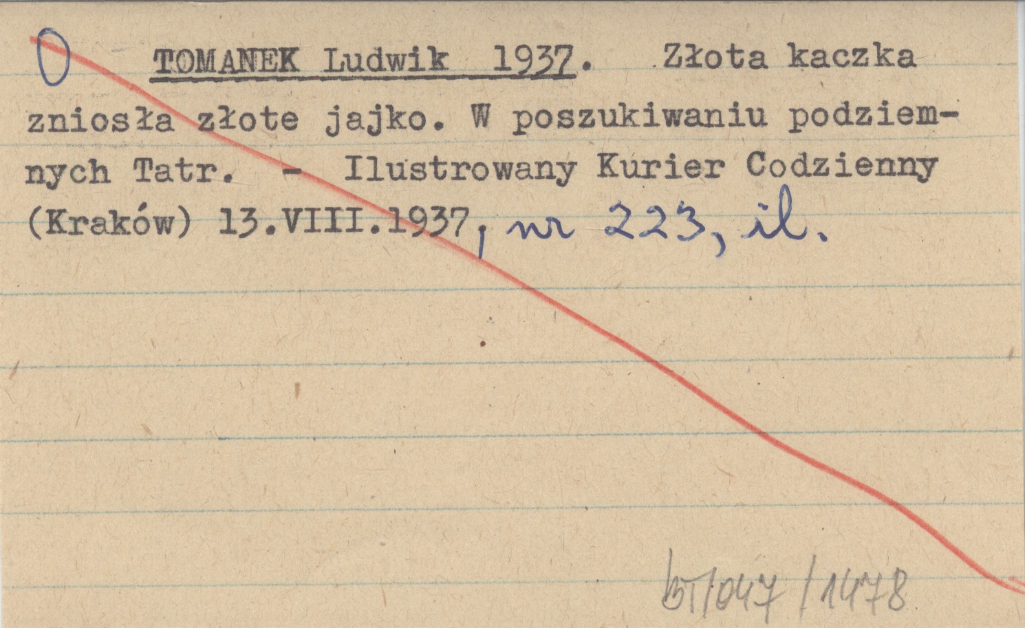 TOMANEK Ludwik 1937 Złota kaczka zniosła złote jajko. W poszukiwaniu podziemnych Tatr.