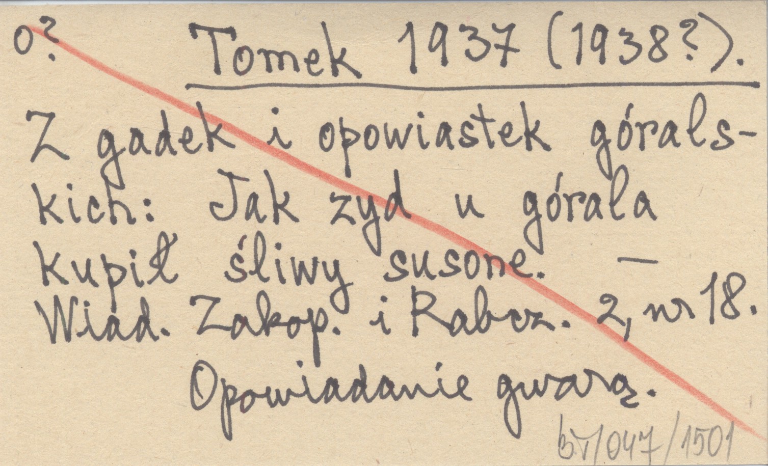 Tomek 1937 (1938?) Z gadek i opowiastek góralskich: Jak zyd u górala kupił śliwy susone.
