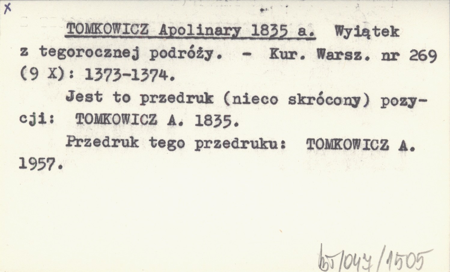 TOMKOWICZ Apolinary 1835 a Wyiątek z tegorocznej podróży.