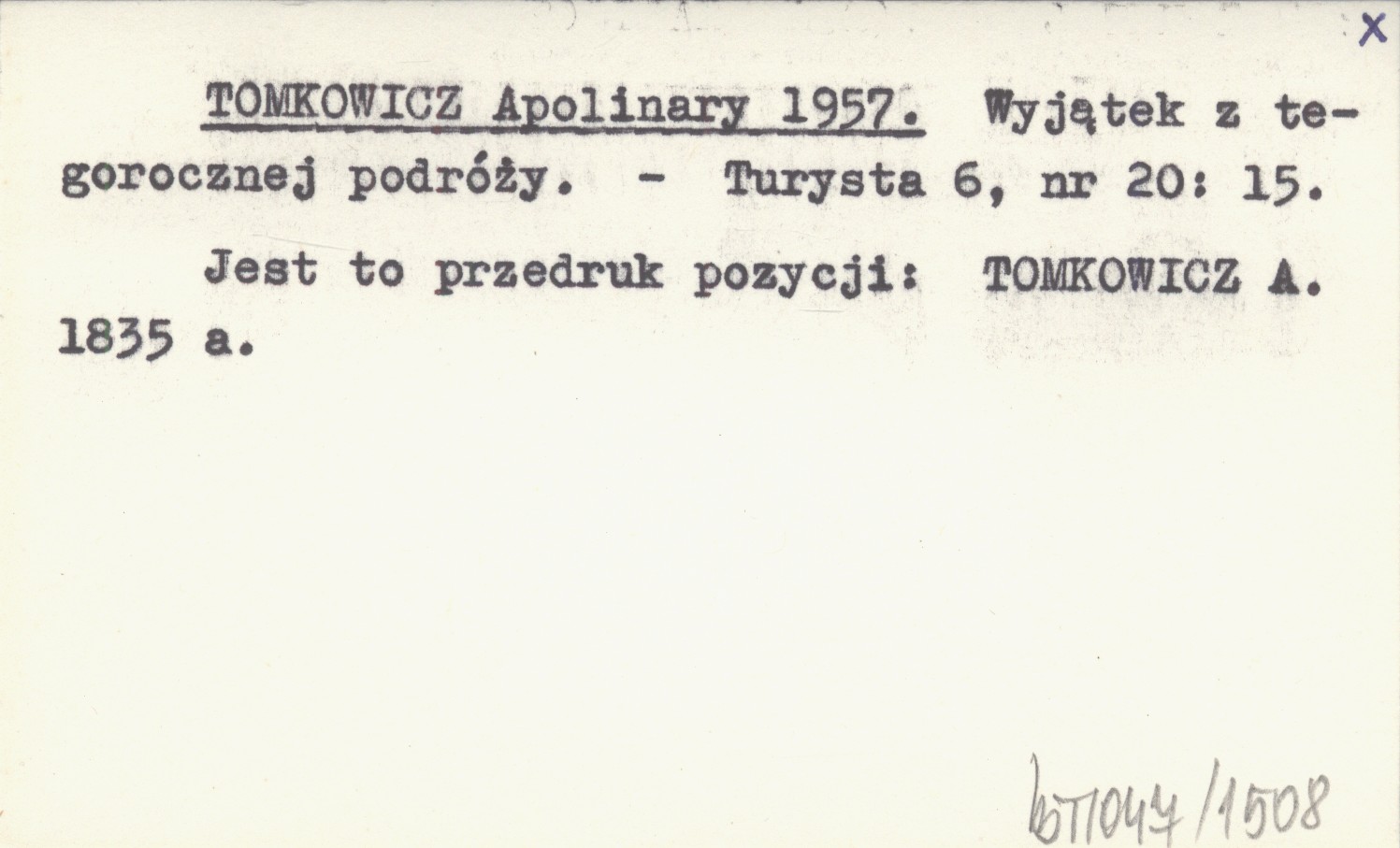 Turysta, 6, nr 20: 15. Jest to przedruk pozycji: TOMKOWICZ A. 1835 a.
