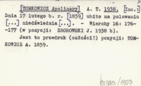 A. T. [TOMKOWICZ Apolinary] 1938 Dnia 17 lutego b. r. [1859] ubito na polowaniu [...] niedźwiedzia [...].