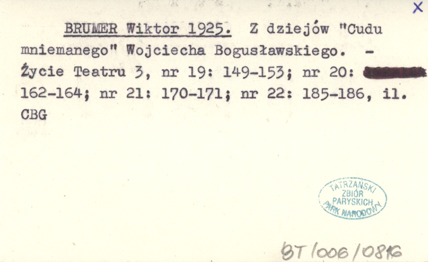BRUMER Wiktor 1925 Z dziejów "Cudu mniemanego" Wojciecha Bogusławskiego.