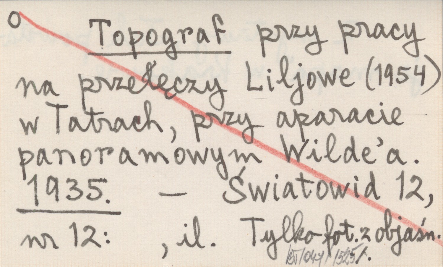 Topograf przy pracy na przełęczy Liljowe (1954) w Tatrach, przy aparacie panoramowym Wilde'a. 1935