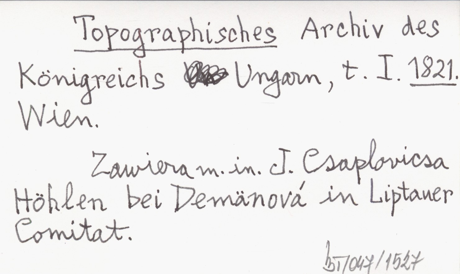 Topographisches Archiv des Königreichs Ungarn, t. I. 1821