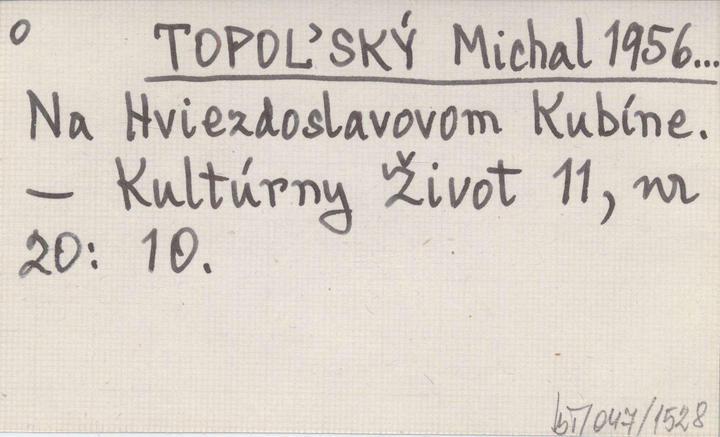 TOPOĽSKÝ Michal 1956... Na Hviezdoslavovom Kubíne.