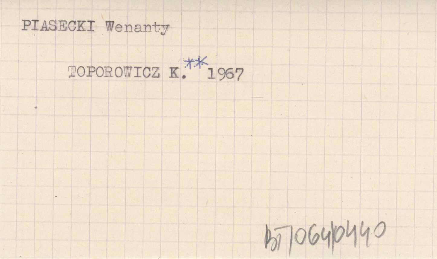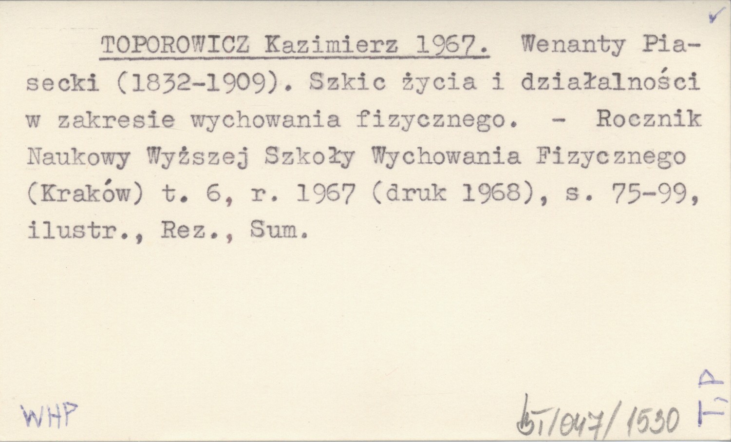 TOPOROWICZ Kazimierz 1967 Wenanty Piasecki (1832-1909). Szkic życia i działalności w zakresie wychowania fizycznego.