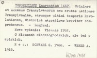 TOPPELTINUS Laurentius 1667 Origines et occasus Transylvanorum seu erutae nationes Transylvaniae, earumque ultimi temporis Revolutiones, Historica narratione breviter comprehensus.