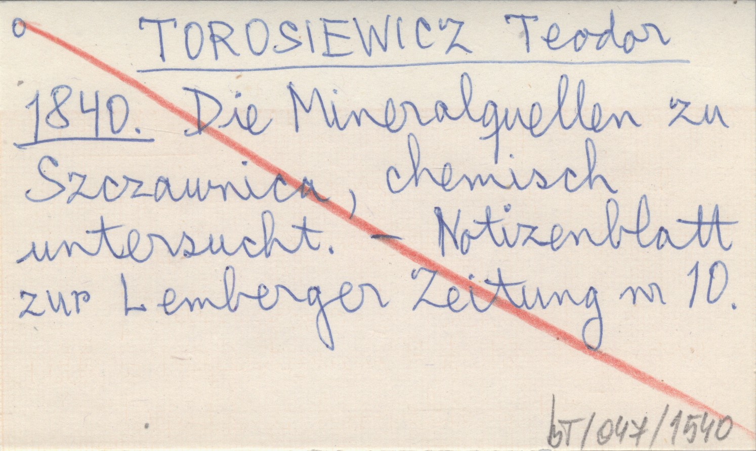 TOROSIEWICZ Teodor 1840 Die Mineralquellen zu Szczawnica, chemisch untersucht.