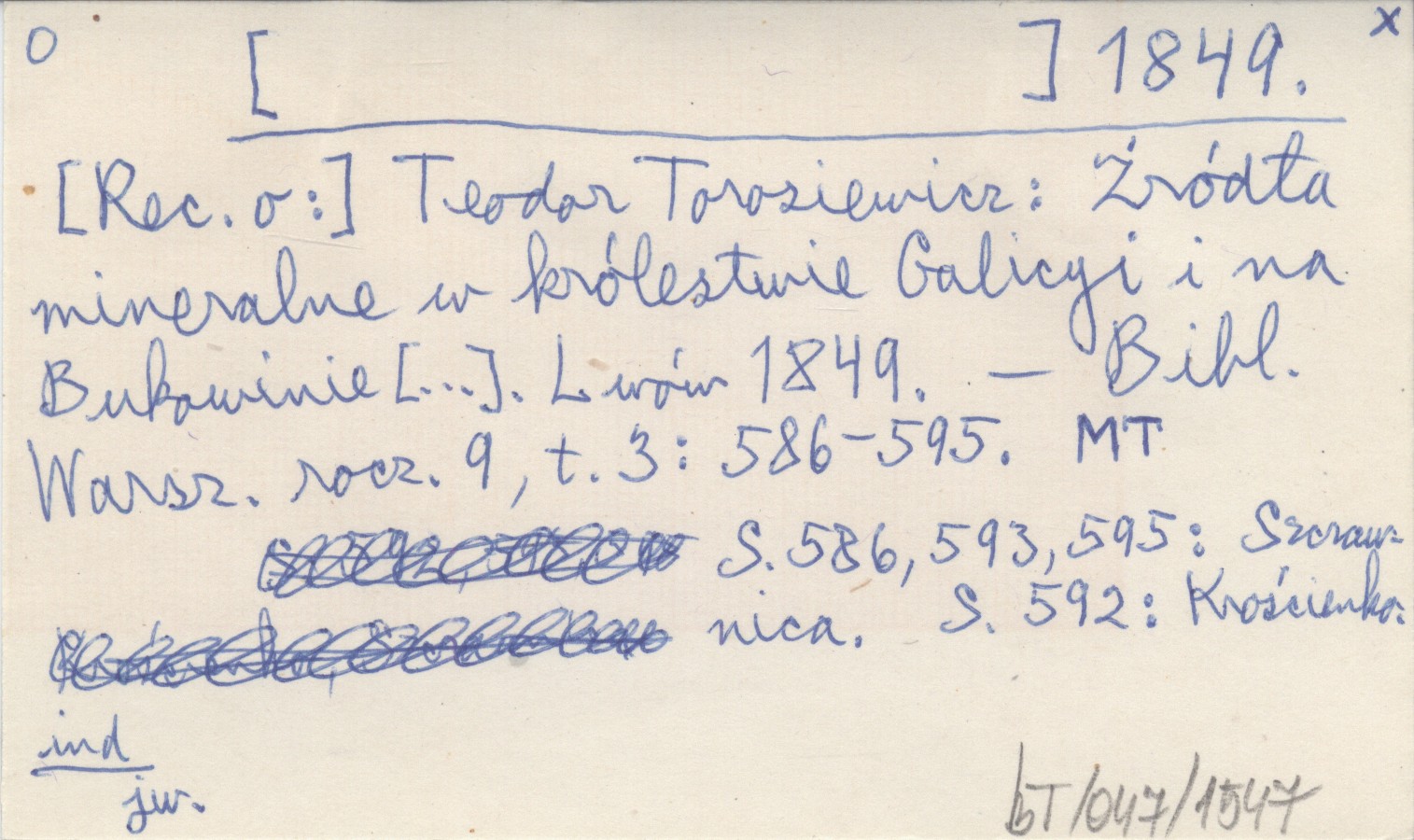 TOROSIEWICZ Teodor 1849 Źródła mineralne w Królestwie Galicyi i na Bukowinie pod względem chemiczno-fizycznym opisane.