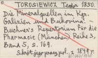 TOROSIEWICZ T. 1850 Die Mineralquellen im Kgr. Galizien und Bukovina.