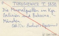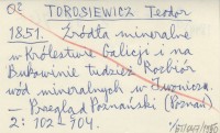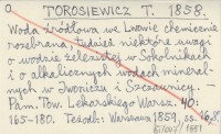 TOROSIEWICZ T. 1858 Woda Ľródłowa we Lwowie chemicznie rozebrana, tudzież niektóre uwagi o wodzie żelezistej w Sokolnikach i o alkalicznych wodach mineralnych w Iwoniczu i Szczawnicy.