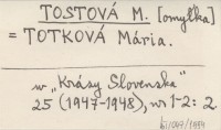 TOSTOVÁ M. TOTKOVÁ Mária Krásy Slovenska 25 (1947-1948), nr 1-2: 2.