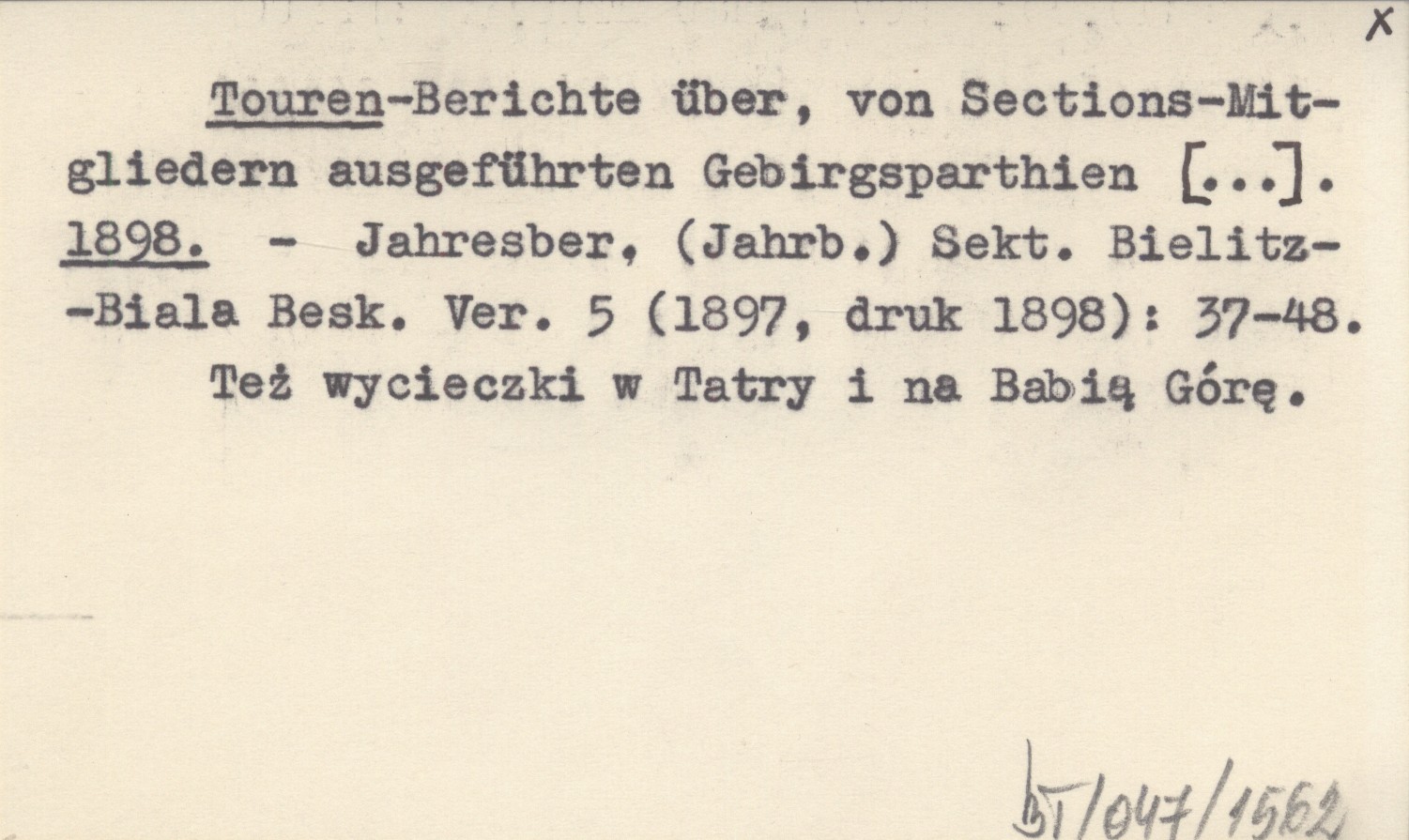 Jahresbericht (Jahrbuch) Sektion Bielitz-Biala Beskiden Vereines, 5 (1897, druk 1898): 37-48. Też wycieczki w Tatry i na Babią Górę.